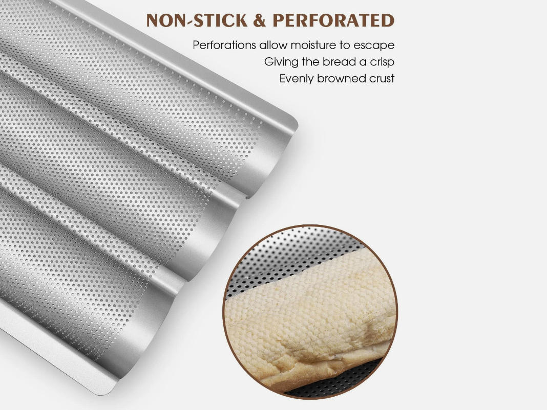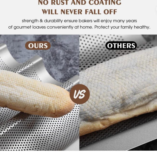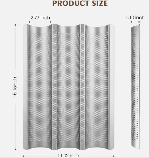 /Bandeja antiadherente de aluminio apto para uso alimentario para hornear baguettes - Bandeja comercial para hornear pan francés