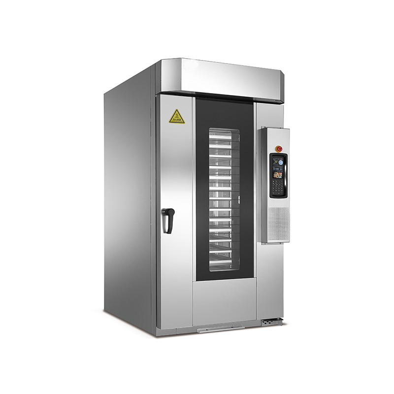 El horno rotatorio de pan es un equipo de horneado comercial que logra un calentamiento uniforme mediante tecnología de horneado giratorio de 360°, ideal para panaderías, fábricas de alimentos, etc., permitiendo hornear grandes cantidades de pan, tostadas, baguettes y otros productos. Su principal ventaja reside en la rejilla giratoria que impulsa la masa a una velocidad constante, combinada con un control independiente de temperatura superior e inferior, lo que garantiza un color y una textura uniformes en el producto final, mejorando la eficiencia en más de un 20 % en comparación con los hornos de pisos tradicionales. Admite múltiples fuentes de calor, como electricidad, gas y diésel, ofrece diversas especificaciones, desde 16 hasta 64 bandejas, para satisfacer diferentes necesidades de capacidad de producción, y está fabricado en acero inoxidable, resistente y fácil de limpiar.