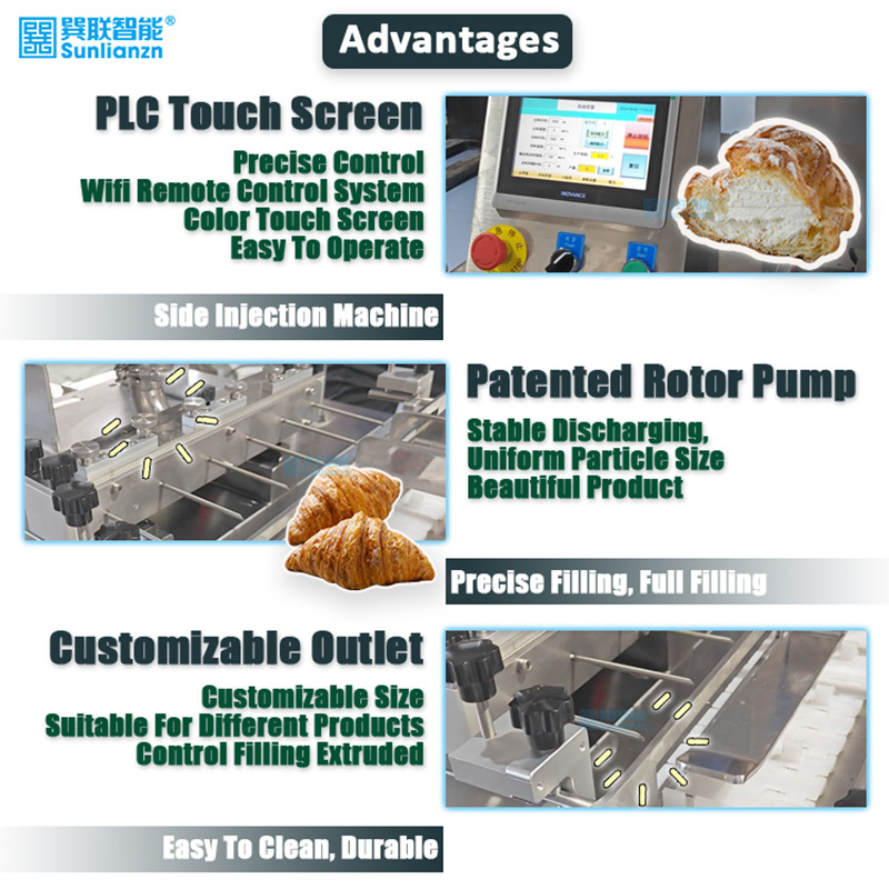 Con más de 20 años de experiencia en el campo de equipos para hornear pasteles y galletas, los productos principales de Sunlianzn incluyen: máquinas para llenar pasteles, máquinas para hacer crepes de durian mille, máquinas para llenar pasteles, máquinas de inyección para pasteles, máquinas para formar galletas, máquinas ultrasónicas para cortar pasteles, etc.