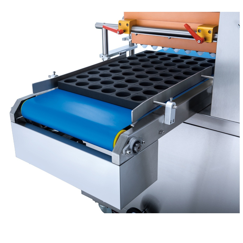 También tenemos nuestra máquina para hacer cupcakes. Es un dispositivo compacto, automatizado y continuo que vierte la masa en moldes. Ideal para pastelerías privadas pequeñas y medianas, es fácil de configurar. Además, al combinarse con mezcladoras y hornos de túnel, puede crear una minilínea de producción automatizada, lo que la hace muy práctica para operaciones más pequeñas.