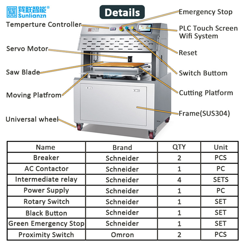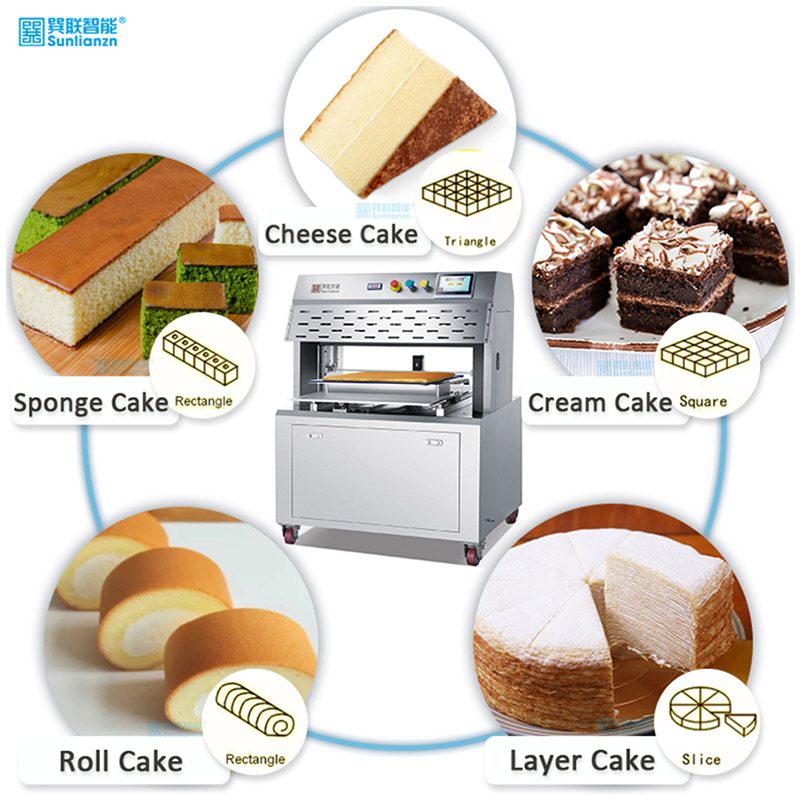 La máquina cortadora de cuchillas para pasteles rectangulares, redondos y triangulares es una cortadora de pasteles de precisión, fácil de usar.
